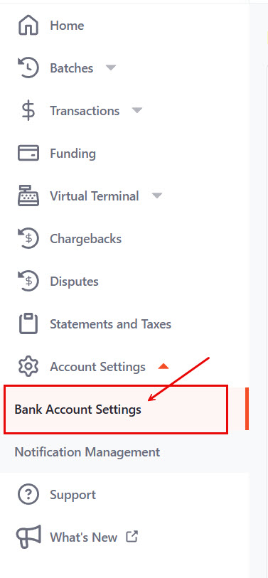 2. Select Account Settings from the left menu, then select ‘Bank Account Settings